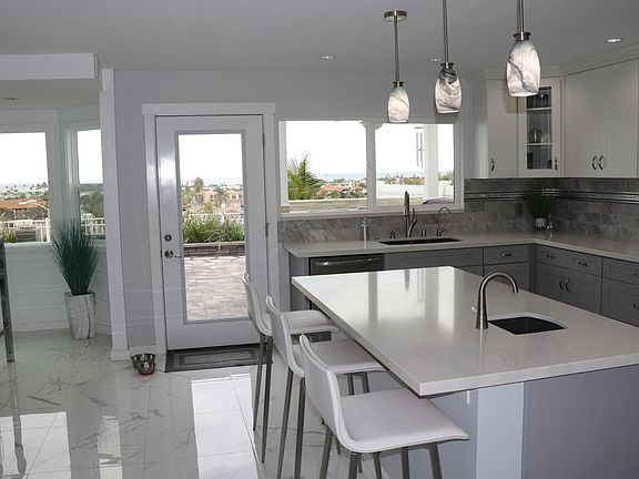Executive Home with Ocean Views from almost every room. Located in Harbor Pointe just half a mile from the beach. Available for lease approximately May 1. Six month rental only. This gorgeous 2 bedroom, plus office, 2.5 bath, 1766 square foot, single family home, on a corner lot, located in a gated Carlsbad beach community, has amazing 180 degree ocean view from the back yard, kitchen, dining room, sitting nook, and master bedroom. The home is renovated to include a large kitchen with all stainless steel appliances, custom cabinets, large island, quartz counters, custom fireplace, etc. etc. All new flooring (custom 24 x 24 marble tile and Pergo) throughout the home . Enjoy the open floor concept, vaulted ceilings, french-doors out to the patio, etc. The spacious backyard, with 180 degree ocean view, is great for enjoying a BBQ, the custom fire pit, and spectacular sunsets. The community offers a swimming pool, and hot tub. Please contact us for additional information.