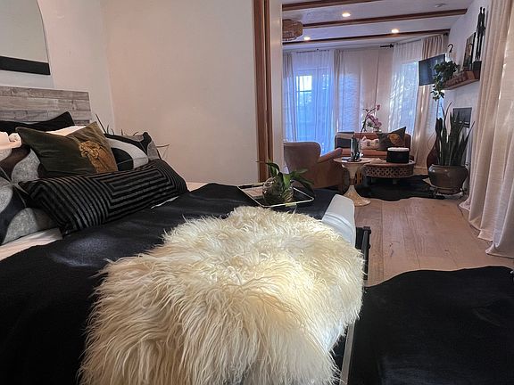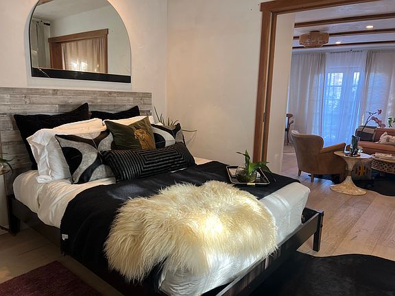 The bungalow features a fully equipped kitchen with high-end appliances including a dishwasher an in-unit washer and dryer, and designer furnishings curated for comfort and sophistication. All utilities, including high-speed internet, are included, allowing for a truly turnkey living experience.