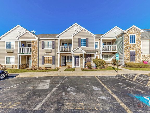 Welcome Home! Discover easy living in this charming 1 bedroom, 1 bath second floor unit. Inside, you will find a bright and functional layout with an open living area with vaulted ceilings and comfortable bedroom with large closet space, and private balcony. Perfectly situated in a desirable, well maintained community surrounded by mature trees and tranquil green space. Enjoy peaceful views and fresh air as you stroll around the scenic lake, complete with two inviting gazebos. located near shopping, parks, dining and easy access to I90. Water Heater 2024, Bedroom A/C Unit 2024.