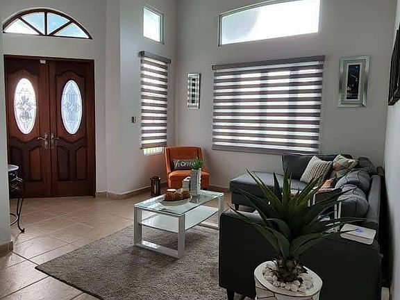 Located in Bo. San Jose, Hacienda Guadalupe Urbanization. Two levels: 3 bedrooms 2.5 bathrooms inside and an additional bathroom in the patio living room; family room on each level dining room and kitchen office. Also includes: carport, terrace, and indoor laundry. Includes: kitchen appliances, water tank, and generator; as well as a garage door and air conditioners in all bedrooms and the family room. Partially furnished. The lot is fenced and approximately 2,000 square meters on a cul-de-sac. Monthly rent: $1,800. Minimum 1-year lease. Credit check and proof of income required..