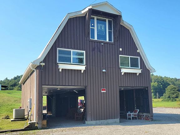 Check out this Barndominium! This unique building boasts 1,662 sq. feet of living space on the second floor that features a large great room with tall, modern, industrial style cathedral ceilings, cozy gas fireplace, 3 large TV's, a nice galley kitchen with granite counter tops and stainless steel appliances that all convey. A long granite bar top and plenty of room for a dining room table. The great room has two patio doors leading out to your large deck with the most beautiful country views and a convenient pull out canopy if you need protection from the sun or rain. Stroll up the extra wide stair case to your open loft area with two separate sleeping areas or bonus spaces. Enjoy your view of the neighboring fields and pond out the large window! Look up to see the gorgeous “Tiffany” style light fixture over the stairway. The large bathroom has a nice big double sink vanity, step in steam shower, large linen closet, laundry and separate toilet room. Washer and Dryer convey. The first floor of this unique property has an extra 1,350 sq ft. of space with endless possibilities! Spray on insulation, rustic reclaimed barn wood on the walls from the original part of the barn, another tv and plenty of space for entertaining, storage or use as a garage. Or finish it to add to your living space. The current owner has rented this property out as an Air B&B and short term rental and has been very successful at it! All this sitting on 3 beautiful country acres! More property is available. Ask the listing agent for more information. City water, natural gas and extra large septic so you could also add some camping spots and tie into it for extra income! No mineral rights convey. Furniture, all appliances and 5 total TV's convey. Central air, gas forced air furnace, gas fireplace and gas space heaters. Hot water on demand, tankless water heater. Perfect chance to own a very unique, versatile property! No deed restrictions! Very near the WV Wildlife Center that is like a small zoo. Not far is the Holly River State Park, Stonewall Jackson Lake, Rock Cave and Buckhannon, the home of West Virginia Wesleyan College. Make this your home, live in it while you build your dream home on this beautiful lot or the additional land that is available or use it as an investment/income property! Call for your private tour of this diamond! Property taxes are only an estimate since this was part of a larger tract. Owner financing an option with a significant down payment. (See agent remarks)