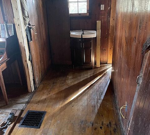 The cabin is livable (renovated bathroom, hot water, ventilation, utilities functioning), but still requires finishing work such as: