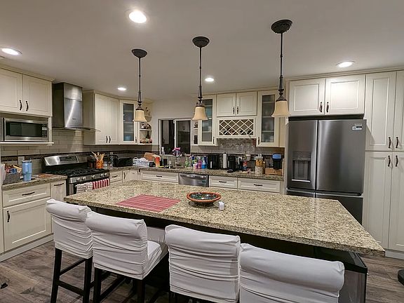 - Updated kitchen with granite island countertops, full-size refrigerator, and ample cabinet space.