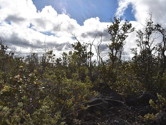 Hawaiian Ocean View Estates - one acre narrow lot (70 ft x 623 ft) located in the upper reaches of Ocean View for pleasant days and cool nights. This property has a variety of plants, including a'ali'i, ohelo berry, ohia trees and more growing out of the a'a lava field. It sits up a bit from the street and will offer both ocean and sunset views. Per Helco, there is an SSPP assessment of $8,444.00 for this lot, so why not use solar or wind power? Lava Zone 2, Flood Zone X.