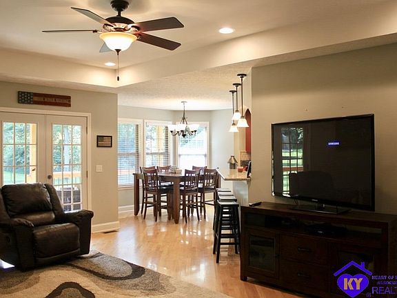 Country living at it's best! Beautiful 3 bedroom, 3 full bath home on 1.29 acres with fenced backyard, full mostly-finished basement walk-out onto large patio, covered front and back porches, shed, garden spot. Kitchen has granite counters, cherry cabinets, appliances, tile flooring, breakfast bar. Great room and hallway has hardwood flooring. Sunroom has lots of windows and is a great place for a home office. Whole house attic fan conserves electric for cooling in Spring and Fall without air conditioner. Basement has a room that is used as a guest bedroom, a full-bath, carpeted family room used for working out, home schooling and leisure; plenty of unfinished storage. Backyard is fairly level for a great place to put in a pool.