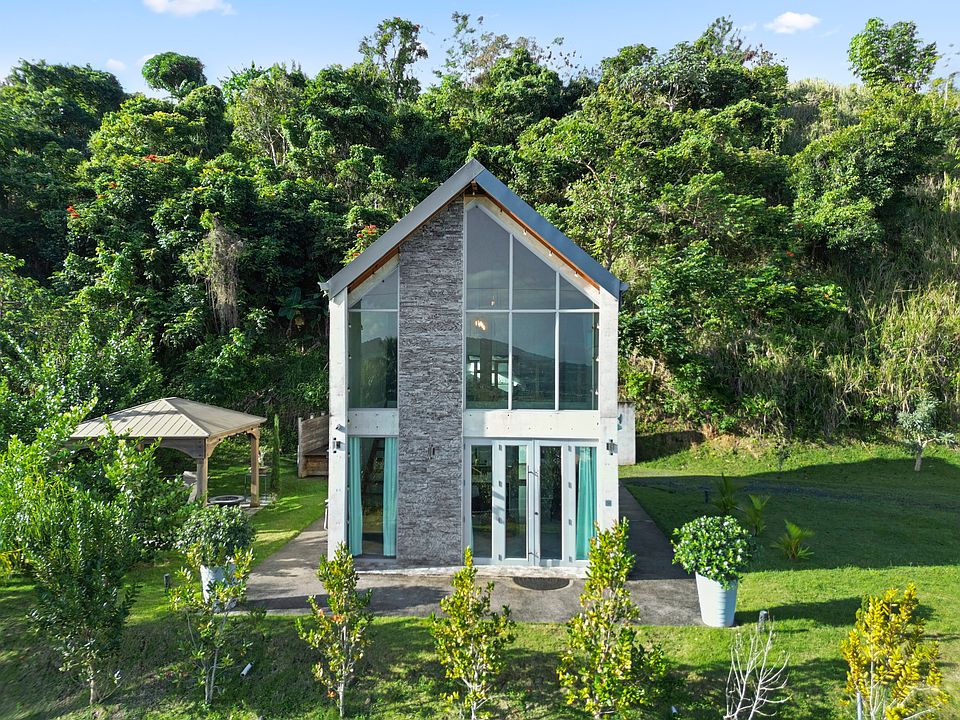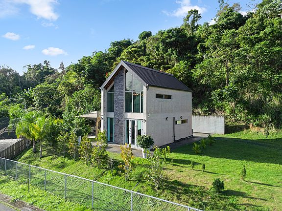 Set in the mountains of Cayey, this two-level designer cabin blends Scandinavian-inspired warmth with modern architectural elements. Soaring ceilings with exposed wooden beams, floor-to-ceiling windows, and polished cement finishes create a bright, airy interior filled with natural light. A sculptural wooden staircase connects both levels, leading upstairs to a serene bedroom, while the thoughtfully designed bathroom is on the main level. Surrounded by an expansive property offering privacy and tranquility, the outdoor spaces include a private jacuzzi spa and gazebo, ideal for relaxing mornings or evenings under the stars. The peaceful setting feels removed, yet offers easy access to main roads, city amenities, markets, fitness centers, and shopping.