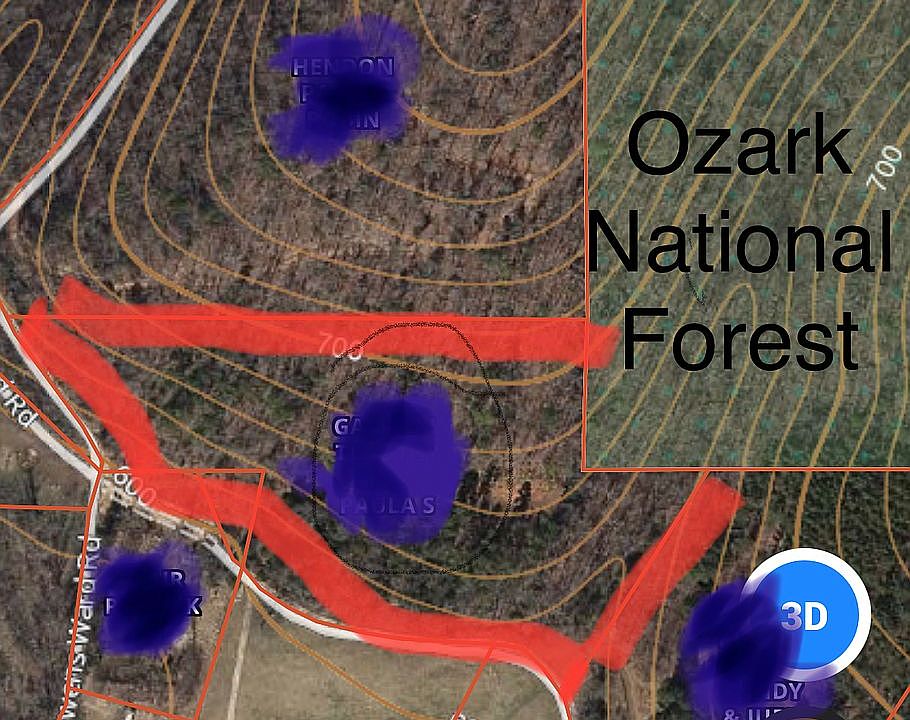 7.6 M/L acres of undeveloped land joining the Ozark National Forest near beautiful Roasting Ear Creek in Stone County, Arkansas.