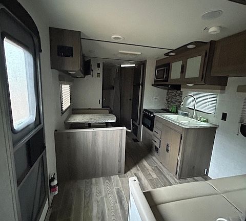 Small travel trailer for rent. Perfect for traveling workers or a single person.