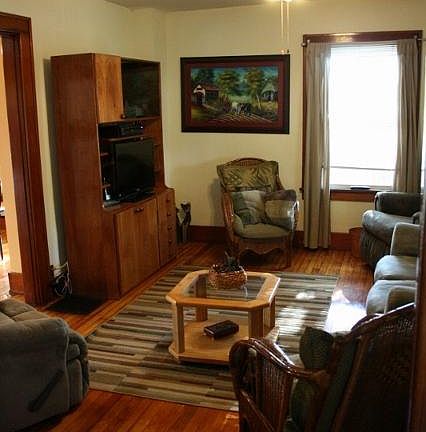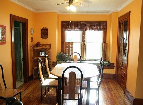 Built in 1929, this lovely home still retains all its roaring 20s charm with hardwood floors (downstairs), wood trim and original built in wooden hutch and bay window, yet shows its modernity with a lovely kitchen complete with stainless gas oven, microwave, dishwasher and refrigerator (not in photos). Home has three bedrooms and one full bathroom upstairs with a full bathroom downstairs (so two full bathrooms). Full basement also has a partial bedroom and plenty of storage room. Central heating and air with added benefit of ceiling fans. Washer and dryer in separate laundry room. Balcony at front with deck at the rear overlooking your own detached garage. The home is in absolutely beautiful condition and right in the heart of Cedarville.