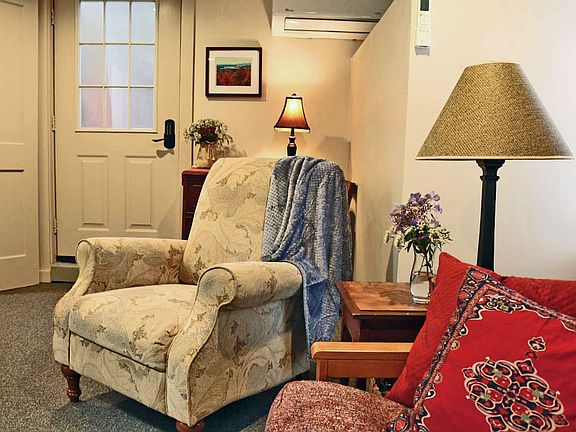 Furnished studioClean bright living spaceComfortable setupButcher block countersWell-equipped kitchenPrivate entrance