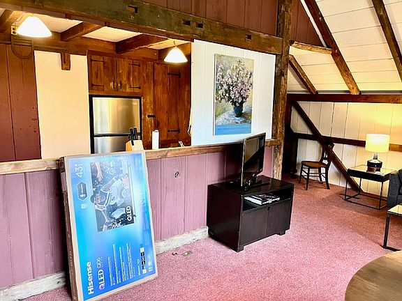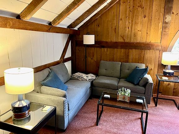 Fully-Furnished 1 Bedroom Apartment over Garage. Living room with large Custom Window, Open-Style Galley Kitchen and Bedroom with King Size Bed. Small office. Plates and Utensils. Large Private Patio. Walk to Town and Train. Parking for 1 car on landlord-occupied property.