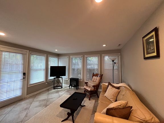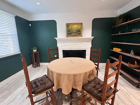 Greeted by a light-filled sunroom wrapped in windows the perfect spot for morning coffee, working remotely, or unwinding with a good book. Continue into a cozy dining area with a fireplace accent, and a modern kitchen space ready for home-cooked meals. (Please note, the fireplace is for design only.)