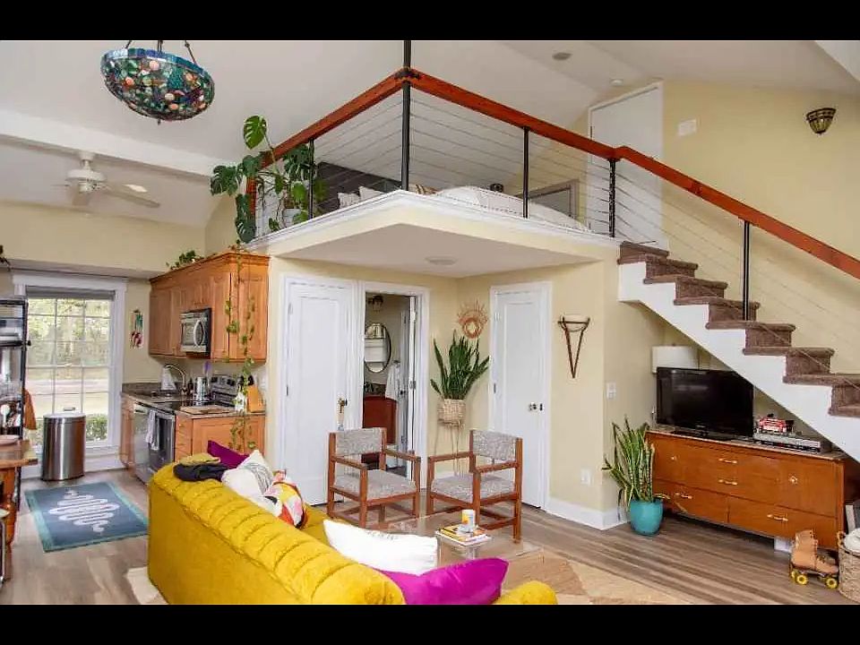 Newly renovated, large, spacious apartment with sleeping loft, full kitchen, full bath, granite countertops, laundry, vaulted ceiling, deck and bonus; outdoor hot water shower offered for lease. This space is located on a quiet, tree lined street near James Island County Park. It adjoins my home, It has a separate entrance with a private deck and is on a large, very private lot full of grand oaks. It is located 4.5 miles from downtown Charleston and 6 miles from Folly Beach. Also; only one mile from the shopping and restaurants of James Island. I'm looking for a single, non-smoking, quiet, professional person that wants to live in this unique space. An application and credit check is required. Also required are first, last and security deposit. The rent is $1800.00 plus utilities, unfurnished, per month which includes utilities and wifi. This apartment can be rented furnished or non-furnished. The furnishings shown may not be the ones used. The utilities and wifi are $250 per month.
