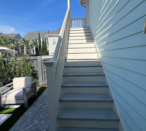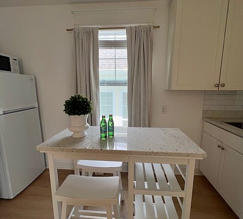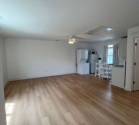 Daniel Island FROG (finished room over detached garage), Studio Apartment with Private Entrance (has stairs), freshly painted white, light filled, light oak wood LVP flooring, new washer/dryer in unit, new ceiling fan, generous closet. Kitchen has stove/oven, sink, refrigerator, new microwave, cabinets. Bathroom has tub/shower combo. Ample street parking.