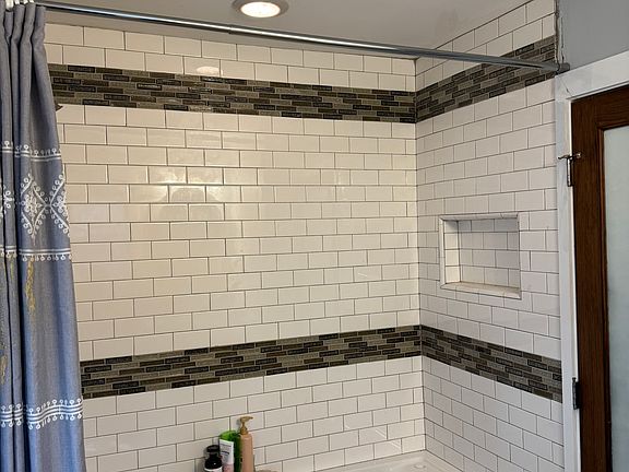 -Tiled shower and baths walls and floor