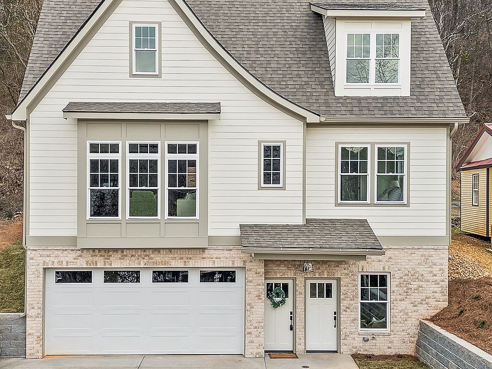 Welcome to this beautifully designed new construction home, where modern elegance meets functionality in every detail. Looking for a home with a completely separate office or in-law suite? This 3-story residence features high-end finishes throughout, including gleaming hardwood floors, modern tile detail, wrought iron balusters, and stylish light and plumbing fixtures. The open floor plan on the 2nd floor/main level offers a seamless flow between the living, dining, and kitchen areas perfect for entertaining. The chef's kitchen is a showstopper, boasting a six-burner gas stove, in-counter microwave, modern cabinetry, pantry, and a sleek range hood. A spacious center island bar provides additional seating and prep space, while the living area is warmed by a custom mantle, creating a cozy yet sophisticated ambiance. A nearby bar area is perfect for a coffee or entertaining station. The main level also includes a charming laundry room with navy cabinetry and modern tile, a stylish powder room, and the primary suite a true retreat featuring a custom walk-in closet and a spa-like bath with contemporary tile and fixtures. Upstairs, you'll find two generously sized bedrooms and a full bath with a tiled tub area, continuing the home's modern aesthetic with sleek cabinetry and premium finishes. Step outside to the 200 sq. ft. covered deck, perfect for relaxing or entertaining guests. A unique feature of this home is the ground-level flex space ideal for home office, gym or studio space, entertainment space or guest quarters. This spacious studio apartment with private entrance includes a large living space, full bath, custom walk-in closet, laundry area, and kitchenette with a wine refrigerator. Situated in a prime location with views of downtown and Lookout Mtn, this home is within walking and cycling distance to restaurants, bars, and shops and is just minutes from downtown Chattanooga, North Shore, Signal Mountain, and Red Bank.