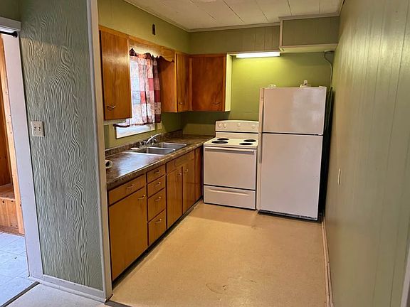 Kitchen with stove and fridge. Dining area and living room have vinyl flooring. Bedroom has updated vinyl plank flooring and the family room could be used as a second bedroom has updated vinyl plank flooring. Bathroom has updated vinyl plank flooring and the laundry is located in the bathroom. Detached 1 car garage. Renter is responsible for getting utilities in their name right away. Renter is also responsible for mowing and scooping snow in winter months.