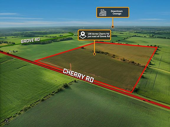 JUST LISTED: Up for sale are 100 acres of farmland just south of Oswego Illinois. Extensive frontage on Cherry Road between Grove Road and Schlapp Road. The land is high and dry with no floodplain or wetlands. The land is currently lease to a tenant farmer on a year to year basis. This is a great opportunity to invest in an area of steady growth and good appreciation. Check with the Village of Oswego for future land uses. SEE conceptual plan in "Additional Information " section. A survey is available upon request. See and Compare. Priced right for today's market.