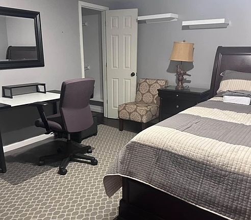 Unit private furnished lower level for Rent in Chesterfield, MO near Kehrs Mill road and Clarkson road (approx 1200 sq ft) newly renovated which includes bedroom with queen size bed-two walk-in closets, desk, triple dresser, bookcase, lamps, LVT flooring and a large floor rug; bathroom, kitchen area w/kitchen amenities (full size refrigerator, microwave, coffee maker, toaster oven, etc.) and game room. Shared laundry and kitchen. We do have cats and dogs in case you have allergies. Step into your cozy environment via a private entrance and relax after a busy day of education and working. There is an outside patio area to hang out with friends and enjoy a nice meal with friends. Perfect for college student, traveling career roles ie. traveling nurses, contractor positions, etc. This rental will not last long! Located in beautiful neighborhood close to shopping, highways (4 miles from 64/40 and 11 miles to Hwy 270) and Logan College (5 miles), Maryville University (7 miles) and community colleges. Serious inquiries only.