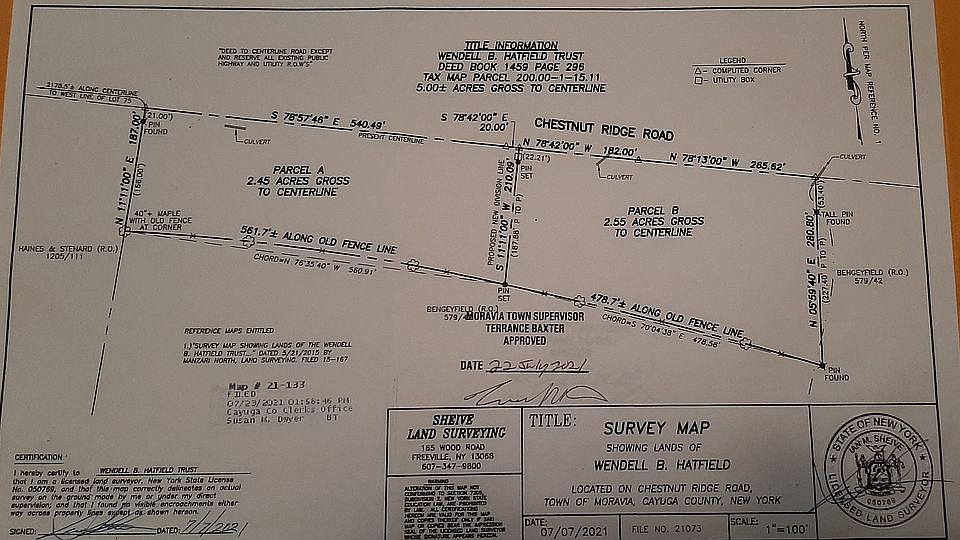 Two Building Lots for sale on Chestnut Ridge Road, Moravia, NY 13118 Just 3 miles from town, on a country road. Each Lot Selling price is $30,000 (Thirty Thousand each) Lot A is 2.45 Acres, Total of 560.49 feet of road frontage. Lot B is 2.55 Acres, Total of 447.62 feet of road frontage. 3.3 miles to Moravia High School 3.4 miles to Moravia Elementary School 3.6 miles to Fillmore Glen State Park 23 miles to Cornell University 43 miles to Syracuse University