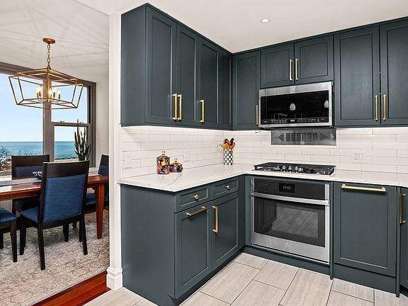 Newly renovated open kitchenQuartz countersStainless-steel appliances