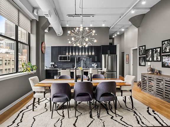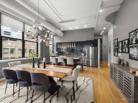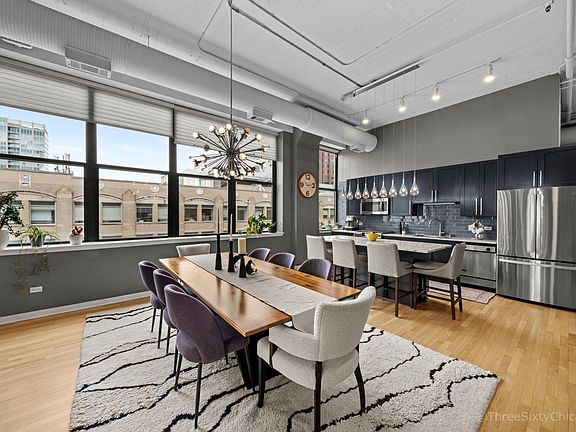 Sun-drenched southwest corner loft at Harrison Street Lofts in the heart of historic Printers Row. This move-in-ready concrete loft blends classic loft character with thoughtful modern updates, featuring soaring 12-foot ceilings, oversized windows in every room, and hardwood floors throughout. The expansive open-concept living and dining area is anchored by a cozy fireplace, creating an ideal space for both everyday living and entertaining. The updated kitchen is designed to impress with natural quartzite countertops in white macaubas, a massive island offering seating and storage, custom backsplash, and stainless steel appliances. The spacious primary suite is fully enclosed for privacy and enjoys southern light, a well-organized walk-through closet, and a spa-inspired bath with a European-style shower/tub. The second bedroom is also enclosed and showcases dramatic west-facing windows. Exercise room, water, cable and Internet included in the assessment. Great location near Blue Line, Red Line, I-290, 90/94 and Lakeshore Drive. Walk to the Lake, Museums, Millennium Park, Restaurants, Shopping, Nightlife. Prime parking space in the onsite heated garage available for additional cost 45K.