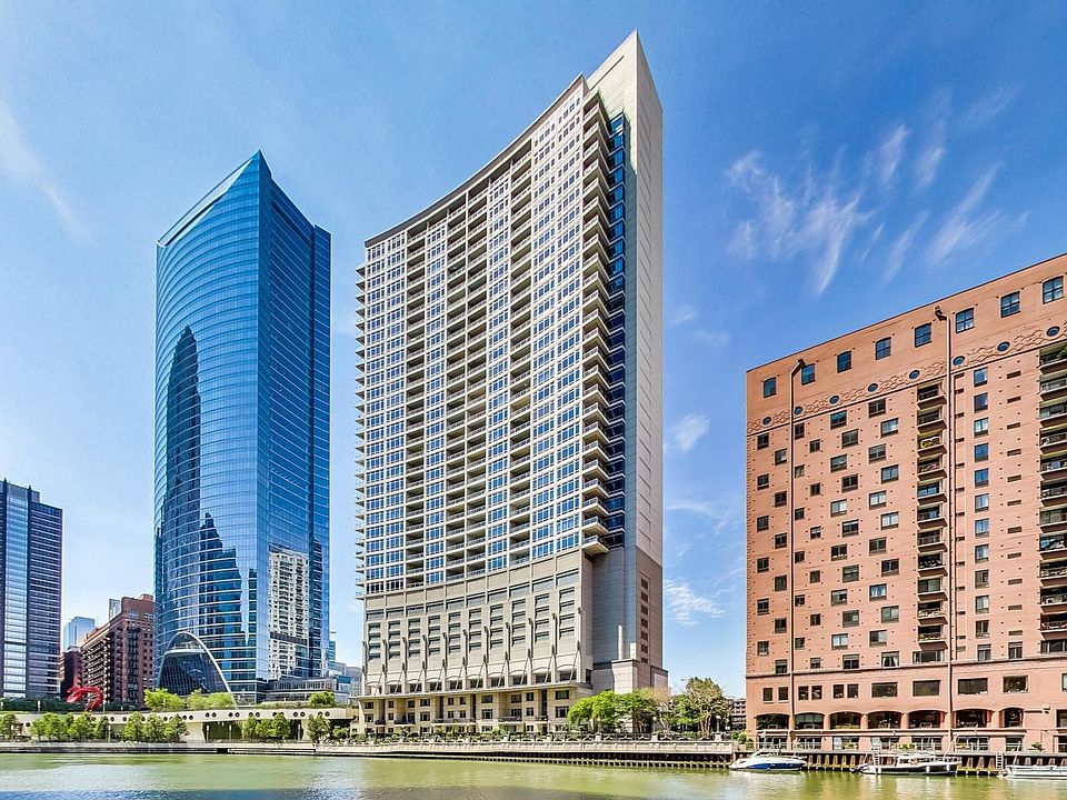 Luxury Residence with jaw dropping City and River views. This one of a kind, rarely available corner unit home has it all including hardwood floors throughout, 2 large private terraces, remote control window treatments, custom closets, floor to ceiling windows, natural stone finishes, surround sound, upgraded high speed internet, custom millwork, 3 bedrooms, 2.5 baths AND 3 deeded parking spaces included! HUGE master suite with spa-like bathroom, custom dressing room, private terrace and secret bookshelf office/den. TONS of in unit storage. Truly a MUST see home! The high-rise amenities include 24 hour door person, enormous state of the art fitness room with spa room, party room with catering kitchen, Receiving room for packages, Business center room, Drycleaner and Outdoor party space! This neighborhood is very convenient as it is across the street from East Bank Club, Merchandise Mart, centrally located to River North, West Loop and Fulton Market Dining plus Gibson's Italia next door and the Chicago Riverfront walking path right out the door! Amazing price for space, amenities and gorgeous views!