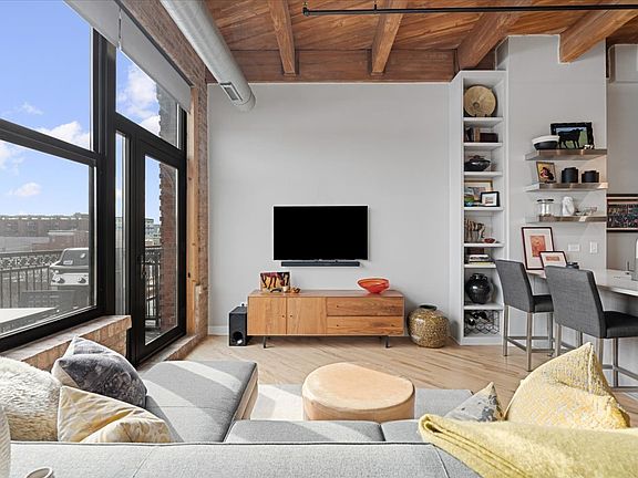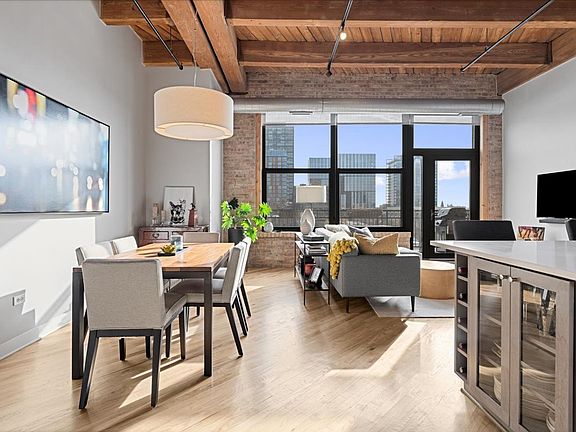 MAGAZINE CALIBER RECENTLY RENOVATED 1 BED 1 BATH ALMOST 900 SQFT SOUTH FACING PENTHOUSE LOFT STEPS FROM THE BEST RESTAURANTS AND SHOPPING IN THE CITY ALONG W/ PUBLIC TRANS, PARKS, ETC IN SOUGHT-AFTER FULL AMENITY WEST LOOP BUILDING W/ GYM, BUSINESS CENTER, DOOR STAFF, ETC; THE LARGE OPEN KITCHEN FEATURES CUSTOM FLAT CABINETRY, STAINLESS STEEL APPLIANCES AND MASSIVE ISLAND OVERLOOKING THE 20+ FEET WIDE ULTRA BRIGHT LIVING AREA W/ DESIGNATED DINING SPACE W/ HARDWOOD FLOORS T/O; THE PRIVATE BALCONY W/ CITY VIEWS IS RIGHT OFF THE LIVING AREA ALLOWING FOR SEAMLESS INDOOR/OUTDOOR ENTERTAINING; GREAT SIZE PRIMARY BEDROOM W/ PROFESSIONALLY ORGANIZED WALL-TO-WALL CLOSET SPACE W/ SHARED RENOVATED OVERSIZED SHOWER PRIMARY BATH; TRUE LAUNDRY ROOM W/ TONS OF STORAGE SPACE; PRIVATE STORAGE SPACE ON THE SAME FLOOR; 2-CAR TANDEM HEATED GARAGE PARKING ADDITIONAL $25K