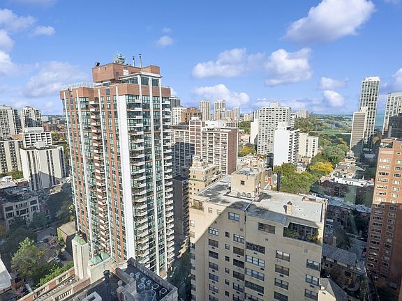 As you step into this remarkable high-rise condominium, you're immediately captivated by the breathtaking views of Chicago's picturesque lakefront, lush parks, and iconic architecture. This home boasts a beautifully remodeled kitchen featuring handcrafted cabinetry, premium stainless steel appliances, and elegant quartz countertops With floor-to-ceiling windows flooding the space with natural light, enjoy the serenity and warmth provided by insulated double-pane windows, making winters cozier. The lifestyle is effortless, offering two spacious bedrooms, a generous living area perfect for entertaining, a built-in fireplace (only on top floors of building), and an open kitchen with a convenient breakfast bar. Laundry is a breeze with the in-unit Bosch WASHER and DRYER add to the convenience. (only a few units have one) Parking is very reasonable at just $215 per month. In the summer, don't miss the chance to relax by the heated pool and enjoy the beautifully landscaped deck! Ritchie Tower is a well-maintained, intimate building with great staff; nestled on a quiet street just off Lake Shore Drive. Two small pets allowed up to 25 lbs each.