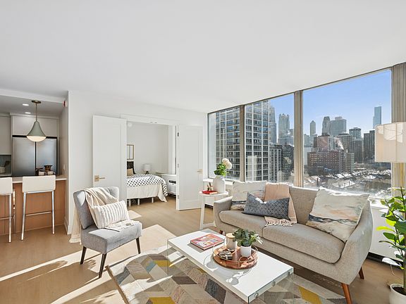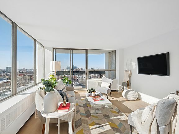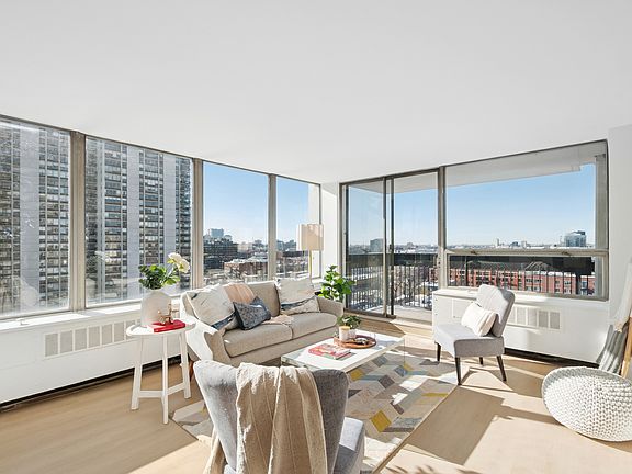 Absolutely stunning total rehab with incredible Southwest views! Split 2 Bed 1Bath floor plan with all high end finishes including: all new flooring throughout, high end quartz, brushed gold hardware, custom cabinetry and details galore! Open chef's kitchen features: custom slim shaker soft close cabinetry, peninsula w/quartz waterfall, built-in microwave, custom designed hood, oversized drawers; all SS appliances, and exquisite backsplash. Spacious living room and balcony w/ VIEWS. Primary bedroom w/custom organized walk-in closet. Bathroom w/frameless walk -in shower, custom vanity, mirrored cabinet, waterfall shower head w/handheld, and whimsical tile throughout. 2nd Bed has STUNNING VIEWS and would be perfect for a guest bed or home office! Ample storage throughout the unit and all closets are professionally organized. All this in a full amenity bldg. w/door staff, gym, 2 pools, tennis (additional fees) & Valet. Walk to the Lake, Lincoln Park, Old Town, Michigan Ave. Public transit at your door or leased indoor pkg. available. Truly better than new construction at a great, affordable price point!! Agent owned.