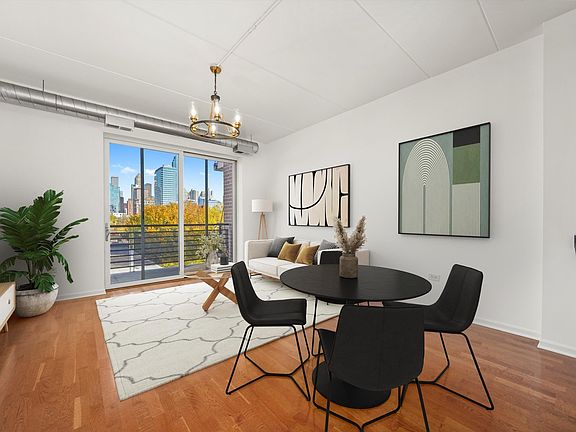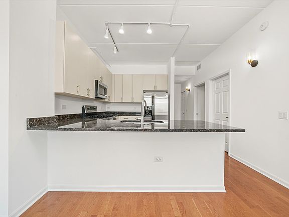 Welcome to The Larrabee! A spacious 2 bed/2 bath gem of a unit located in River North. Enjoy the most unique and unobstructed skyline views from your charming balcony! Unit has been fully and freshly painted, new hardware throughout, high ceilings, updated kitchen, featuring 42" cabinets, brand new microwave, a dishwasher, new light fixtures, in-unit washer/dryer, ample closet space, and a balcony. Spacious primary suite also features customized walk-in closet, double vanity, and soaking tub. Large second bedroom with organized closet, perfectly appointed for guests or a work from home office. Additional storage locker included. Prime deeded parking spot is available for purchase at 25K, conveniently located in the attached heated garage. Simply walk across the street to get to the riverwalk and rent a kayak or a boat for the afternoon. Just steps from parks, a dog park, Starbucks, Whole Foods, Mariano's, Target, the best restaurants/nightlife, the "L," and highway access.