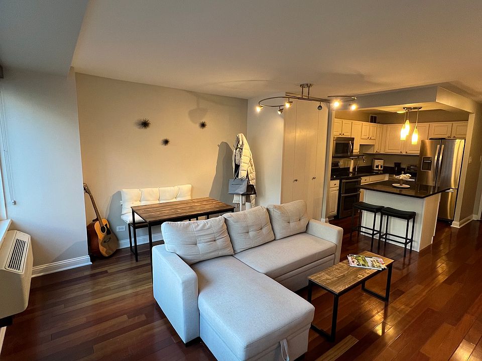 Recently remodeled 1-bedroom in the heart of Streeterville featuring hardwood floors, quartz countertops, stainless-steel appliances, jetted tub, in-unit laundry and more. High-speed internet (150mbps), cable, DVR and water all included with rent. Great location 2 blocks from Michigan avenue, 3 blocks from Ohio Street Beach with many restaurants, grocery stores, public transportation, etc. Building amenities include 24-hour doorman, valet garage parking (available for additional rent), building maintenance, laundry facility, sun deck, full-service health club with lap pool, cardio, weights, basketball court, racquetball court, tennis courts, indoor pool, locker rooms, sauna, steam room, and hot tub.