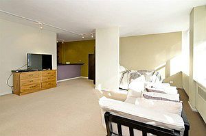 HUGE studio with separate sleeping area/den. Slate floors in foyer & kitchen. Custom sun-shade blinds. Stained cabinets with large breakfast island.. Separating kitchen and living area. Modern bath with vessel sink. Built-in office space. FULL AMENITY BUILDING Express bus at front door; Doorman, Bike Room/Bike Trails, Outdoor Pool, Coin Laundry, Commissary, Elevator, Exercise Room, Storage, On Site Manager/Engineer, Party Room, Sundeck, Receiving Room, Restaurant, Security Door Locks, Service Elevator, Valet/Cleaner. App fee: $60 per person. Move in fee: $250. Rent includes: Heat, Water. Tenant will pay additional each month: $49.50 for Cable TV& Internet which includes TIVO.Room Dimensions:Living Area - 15x12Den/Sleep Area - 11x7Kitchen - 12x8