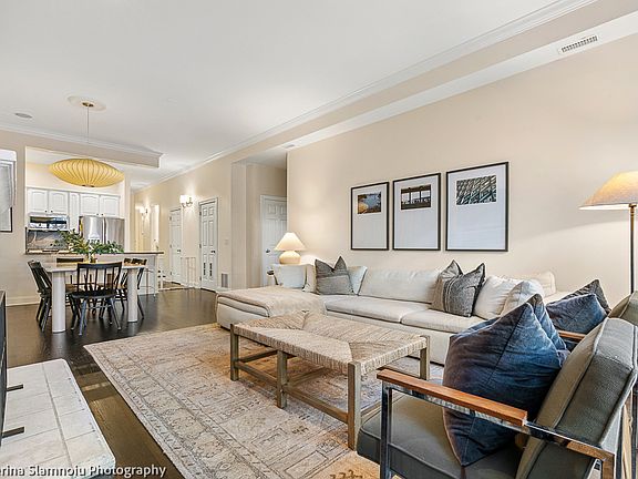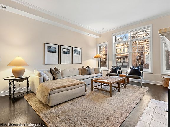 This stunning 3-bedroom, 2-bathroom condo is ideally situated on a charming tree-lined street in the heart of Lakeview East, just steps from the lakefront, Southport Corridor and Wrigley Field. Featuring soaring 10-foot ceilings and expansive north- and east-facing windows, the home is filled with natural light and offers a bright, airy ambiance throughout. Located one flight up, this high first-floor home is set within an intimate 9-unit building and overlooks a quiet residential street. The open-concept living and dining area easily accommodates a large sectional and a dining table for 8-10 guests, making it ideal for both everyday living and entertaining. The living room features a gas fireplace and oversized windows, while the dining area flows seamlessly into the spacious, fully updated kitchen. The kitchen boasts white soft-close cabinetry, modern pendant lighting, stainless steel GE Profile appliances (2022), ample storage, and a peninsula with seating for three. Three generously sized bedrooms are tucked away at the rear of the home for added privacy, along with two full bathrooms. The primary suite comfortably fits a king-size bed and includes a professionally organized walk-in closet and an en-suite bath with dual sinks, a Jacuzzi tub, and a walk-in shower. Additional highlights include hardwood floors throughout, a walk-in laundry room with newer GE Profile front-loading washer and dryer (2023), and a private deck perfect for relaxing or grilling. The unit offers abundant storage, including an additional storage area outside the home, and includes one garage parking space in the detached garage. Smart-home features include a Nest thermostat, ceiling speakers in most rooms, and touchscreen door locks. This meticulously maintained home has seen numerous upgrades: furnace replaced in 2020; floors refinished, interior repainted, new lighting fixtures, and a gut renovation of the hall bathroom in 2020; new kitchen countertops and appliances in 2022; washer and dryer in 2023; and a primary bath update in 2025. Unbeatable location just steps from Whole Foods, Jewel-Osco, Walgreens, Starbucks, CTA Red Line, parks, lakefront path, and all the dining, shopping, and entertainment Lakeview East has to offer.