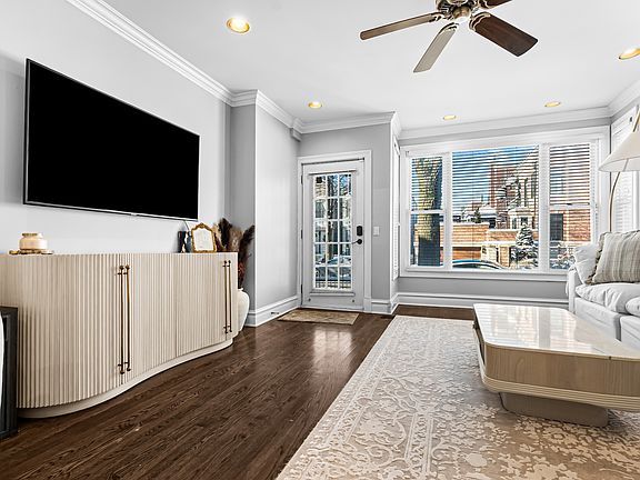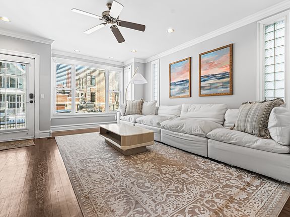 Spacious and inviting, this oversized 2-bedroom, 2.1-bath duplex down lives like a single-family home in the heart of Lincoln Park. The sun-filled front living room overlooks beautiful tree-lined Greenview, while the generous open dining area offers the perfect setting for entertaining, hosting holidays, or creating a dedicated home office. The updated kitchen features classic two-tone cherry cabinetry, timeless granite countertops, a large island, and stainless steel appliances. Step right out to your private back deck and the serene, professionally landscaped common backyard-an ideal haven for morning coffee, grilling, or relaxing outdoors. The lower level is a true retreat, showcasing an expansive ensuite primary bedroom with a massive walk-in closet and a marble bath with a soaking tub, separate shower, and double vanity. Recent enhancements include new sconces (2026) and refreshed vanity paint, hardware, and mirrors (2025), adding a clean, modern feel. A spacious laundry room with exceptional storage adds everyday convenience rarely found in condo living. Additional updates include full interior painting (2025), new vent covers throughout the lower level, new closet doors and a lighting fixture in the second bedroom (2025), and refreshed front landscaping with new privacy bushes and perennial plantings (2025). Easy street parking and an unbeatable location-just steps to Wrightwood Park, Lincoln Park, Bucktown, shops, restaurants, the train, and convenient highway access-complete this exceptional offering.