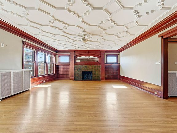 This fantastic, sprawling top-floor 6-bedroom, 2.5-bath condominium, perfectly located in the heart of the South Kenwood historic landmark district, has the space, style, and location to create your perfect new home. Its 3600 square feet of space provides a wealth of oversized rooms in a gracious house-like layout with stunning period features, including extensive mahogany woodwork, elaborately carved plaster ceilings, and oak hardwood floors throughout. In-unit laundry and an 800 sq foot private lower-level storage room . Across the street from Madison Park and convenient to the University of Chicago campus, the shops and restaurants of 53rd Street, Whole Foods, and convenient downtown transportation.