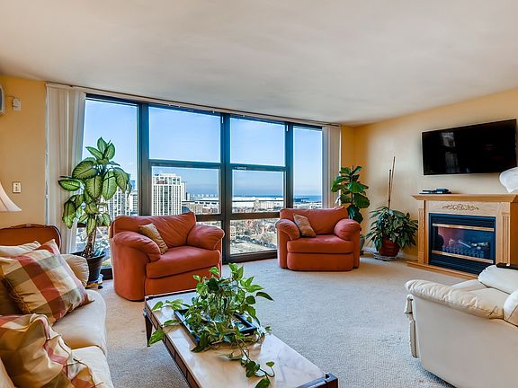 Own this Amazing Well Maintained Condominium Unit with 2 Private Balconies with 2 Uncompromised views: one to Chicago's Downtown Skyline and a Second View of the magnificent Lake Michigan. Great Kitchen Living, Dining Open Floor Plan makes this unit the best in the building. It boasts Stainless Steel appliances and 3 newer air conditions. The building provides 24-hour laundry and roaming security staff and security cameras. For an additional fee, there is covered and uncovered parking facilities.