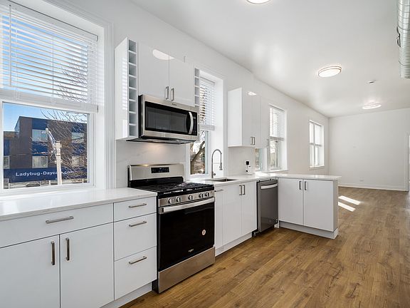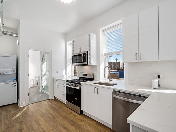 Chic new gut rehab two bed two bath rental in the heart of Irving Park neighborhood. This property combines sleek modern finishes with thoughtful design. Bask in the natural light from the stunning skylights that brighten every corner of the unit. Enjoy the convenience of in-unit laundry, bluetooth speaker and ample storage space. Designated exterior parking available, not included in rent. Free membership to Lit Studio offered to new tenant.