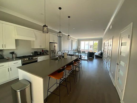 New construction luxury building with spacious living area and three bedrooms - a kind bedroom, a queen bedroom, and a bunk bedroom (two queen bunk beds). The unit has hardwood floors, high-end appliances, oversized windows, and complete smart integration for thermostats and locks. Other amenities include a coffee maker, blackout curtains in every bedroom, and a printer.