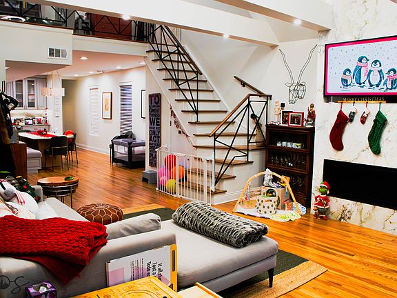 MASSIVE! Stunning Three bedroom/Three Baths! Call Apartment Guys and ask for reference #2203371. Huge space at approx. 2400 Sq Ft! Incredible & rare top floor 3 bedroom plus three baths! Duplex up penthouse with 2 decks! This unit features exposed brick, a gas burning fireplace, a gorgeous kitchen with granite countertops & SS appliances including a dishwasher and wine cooler! There also is space for a dining room table off the kitchen! Enjoy the ease of having central AC as well as laundry in your apartment! The top floor features two bedrooms, two baths and one deck! Downstairs is one bedroom and one bath and an additional deck of the living area! Enjoy the backyard and one garage space is included in the rent!. Located in the high demand A N Pritzker elementary school district. Most smaller pets are ok!