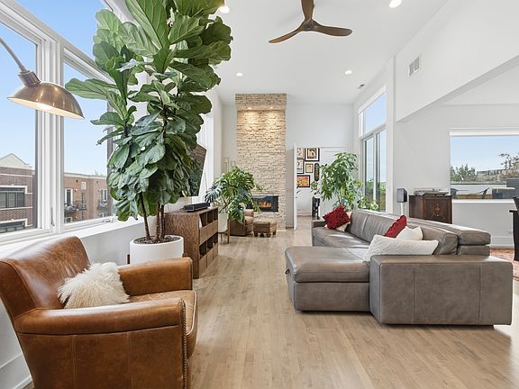 Don't miss this extraordinary full-floor 2 bedroom plus office/den/potential 3rd bedroom, 2 bathroom penthouse in the heart of Wicker Park/Bucktown. This chic boutique building offers easy elevator access directly into your unit and the most incredible skyline views! The wide, open concept floor plan is flooded with natural light, featuring 12'+ ceilings, hardwood floors, updated moldings, and so much more. The designer kitchen has granite countertops, a huge island with stainless steel appliances, a wine fridge, and opens up to the large living room with an incredible floor-to-ceiling fireplace and separate dining room with stunning views. Access to the 745 sqft private roof deck is available through 2 separate doors allowing for easy indoor/outdoor living from your main living area. Relax under the beautiful pergola and enjoy the composite decking and built in planter boxes while you take in the fabulous views of the city skyline. Plus you get a second upper rooftop deck displaying even more exceptional views. Retreat indoors to the generously sized main bedroom equipped with a walk-in closet with custom organizers, a private balcony and an en-suite main bathroom with custom tile work, a steam shower and a whirlpool tub. A second bedroom and newly renovated bathroom completes this perfect package. This amazing penthouse includes an attached 2-car garage plus additional tandem spots. Truly a rare find in a fabulous location - just steps from North/Damen, many restaurants and nightlife, public transportation and 90/94.