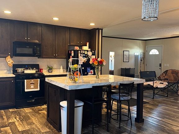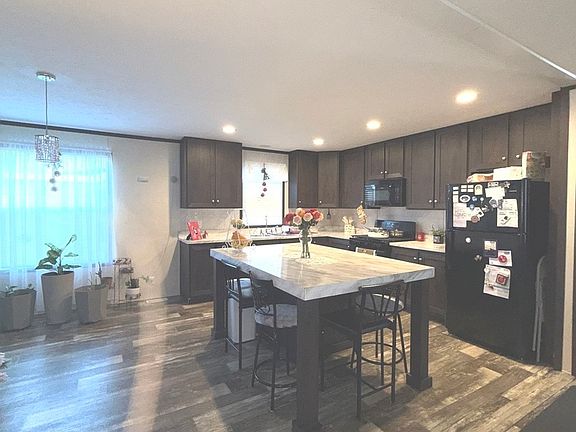 Very nice and spacious newer double wide Mobile home located on a corner lot which allows for additional parking spaces. It has an open concept design with beautiful laminate flooring and a gorgeous custom kitchen. The huge master bedroom has a large walk in closet and a master bath. The dining room and living room are setup for entertaining your guest.