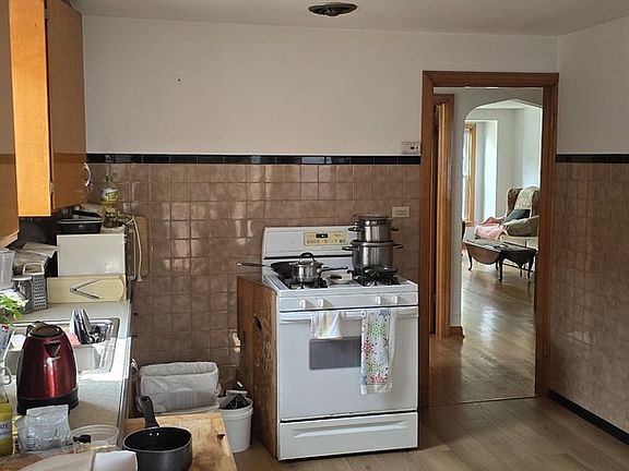 Great opportunity for this 2 bedroom 1 bathroom brick house with excellent location. Walking distance to public transportation and stores. Bring your ideas to add more rooms to the 2nd floor and basement. Great home for investors, with potential to use the separate entrance to the lower level.Well maintained yard with 2 car garage. Property is in good condition, but sold AS IS.