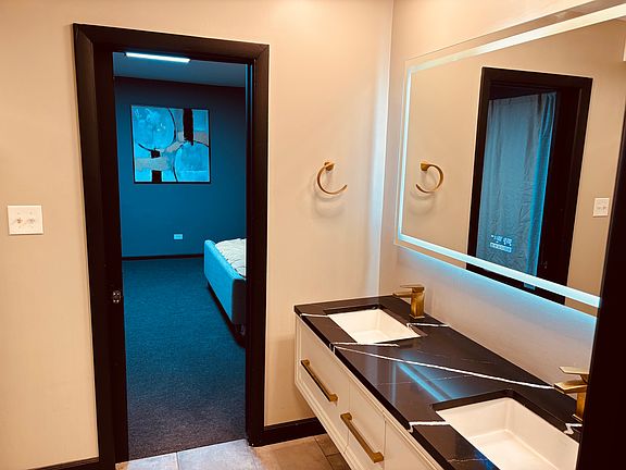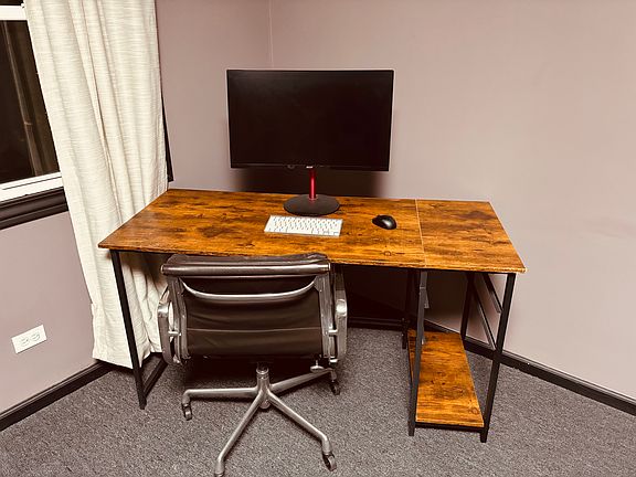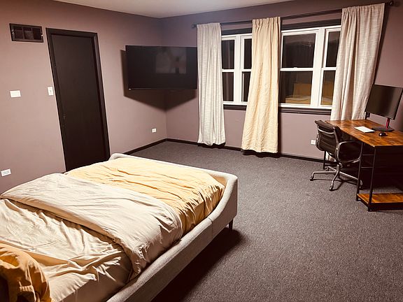 A room for rent on the second floor of a modern-style building in the Washington Park neighborhood on Chicago's South Side. The location provides easy access to public transportation, just off the Dan Ryan Expressway, and is 1.6 miles from the University of Chicago's Main Quadrangle. This fully furnished room includes a Queen-size bed, a mattress, a desk, a chair, a TV, and a large closet with ample storage. Also, this room includes a private bathroom. The common area features a scenic living room with floor-to-ceiling windows and a kitchen with in-unit laundry (washer and dryer included). Pets are not allowed at this property. All utilities (gas, water, electricity) and Wi-Fi are included in the rent. Applicants must complete a rental application and authorize a $50 credit and background check. A non-refundable move-in fee for this room is 50% of one month's rent and must be paid when the signed lease agreement is submitted.