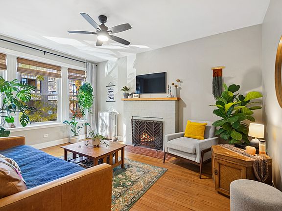 A spacious and sun-filled 2-bedroom home perfectly situated on beautiful, tree-lined Winthrop Avenue! This updated residence features hardwood floors throughout and a large living room with three oversized windows and a cozy fireplace - with the option to mount your TV above for optimal viewing and relaxation. The chef's kitchen is designed for entertaining with a gas range, walk-in pantry, breakfast bar seating, and a seamless flow into the separate dining room - all opening to a huge private deck for outdoor dining and relaxation. A long hallway separates the living and bedroom areas, providing privacy and a natural flow throughout the home. The updated bathroom offers a modern walk-in shower and an efficient toilet for style and functionality. Additional highlights include enormous private storage, a laundry room, and convenient bike storage in the basement. This well-maintained, pet-friendly 3-story brick building offers heat and water included in the monthly assessment. Secured off-street parking is also included. Ideally located between the lakefront and Andersonville, close to the CTA Red Line, Mariano's, shops, and restaurants. A perfect blend of space, comfort, and location!