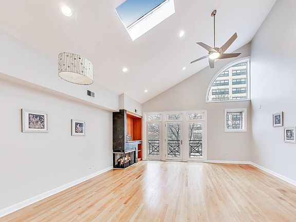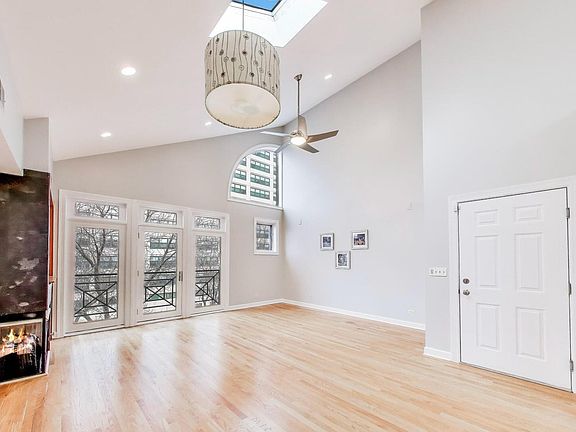 Discover a truly special living experience in this top-floor penthouse, where the soaring 16-foot cathedral ceilings and skylights create a warm and inviting atmosphere filled with natural light. Spanning 1,370 square feet, this generous 2-bedroom, 2-bath home offers a perfect blend of comfort and style. The open living area is designed for both relaxation and entertainment, featuring a charming French balcony that enhances the space and an abundance of skylights that brighten your days. The unit is adorned with beautiful hardwood floors and a sleek granite kitchen, equipped with stainless steel appliances. Cozy up by the gas fireplace or take in the views from the impressive high ceilings throughout. In the master bath, enjoy a touch of luxury with marble finishes, a separate shower, and a soothing whirlpool tub, complemented by a stainless double bowl vanity. Step outside to your large deck, where you can relish unobstructed views that inspire tranquility. With a private and deeded parking spot in a gated surface lot, secured front and rear doors for both access and mail/package and additional storage convenience is at your fingertips. The location is exceptional-just moments away from the serene Montrose Beach and the Lawrence Red Line station, making your daily commute a breeze. You'll find delightful coffee shops and restaurants nearby, such as Heritage Post, Lawrence House, Emerald City Coffee, and Little Vietnam, all contributing to the vibrant community around you. This penthouse is not just a place to live; it's a welcoming retreat that embodies comfort and connection to the beautiful surroundings.