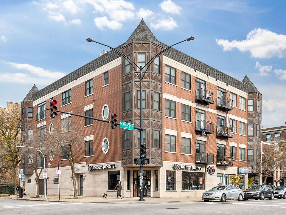 Open and airy 2BR/2BA corner unit in an elevator building! This south and east facing unit offers incredible natural light all day long, and the high 10' ceilings, hardwood floors, private balcony, and cozy fireplace in the living room add to the charm not often found in modern buildings. The open concept living/dining/kitchen are perfect for entertaining, and the wide square floor plan is a welcomed reprieve from the traditional, rectangular (read: "narrow") Chicago flat style of living (yes, that's a dig, and I won't apologize for it). Literally spread out--get that sectional and dining set from Pottery Barn you've had your eye on - it'll fit here! For those who love to cook, the kitchen is outfitted with granite countertops with bar seating, stainless steel appliances, and tons of cabinet storage. The primary bedroom suite is perfectly suited to accommodate a king bed set, and the victorian style tower offers a space to use as a sitting room, or a work-from-home space where you can people watch all day long (let's be honest here). Plus the full ensuite primary bath has a dual vanity, jetted tub, and walk-in shower. The second bedroom and bathroom are great for guests as they are right next to each other. To top all of this off, the unit is equipped with in-unit laundry, newer HVAC and water heater (all from 2025)! The building has a common roof deck for the '03 units in the prime southeast corner, offering neighborhood and skyline views. One heated garage parking space included in the price, plus common bike storage is available! Known for its central location, Uptown/Sheridan Park offers incredible walkability and accessibility. Brand new Wilson Red & Purple Line Station is just steps away, along with multiple CTA bus lines on Wilson and Broadway Avenues. Tons of restaurant options like Carino, Downstate Donuts, Piacere Mio, Uptown Taproom, Marina's Bistro and Pokiology, and coffee shop options like Elevate and Emerald City Coffee--all right outside the door (or visit all the shopping, dining and nightlife options on Clark Street in Andersonville, just minutes away). Great park options within 4 blocks, like Chase, Broncho Billy and Gooseberry Parks. Less than two blocks to Target, Aldi and Jewel. Spend evenings and weekends taking in a concert at The Aragon Ballroom, Riviera Theatre, or Green Mill Tavern two blocks north. Easy access to Lake Shore Drive, Lakefront Trail, and Montrose Beach at Lake Michigan!