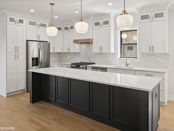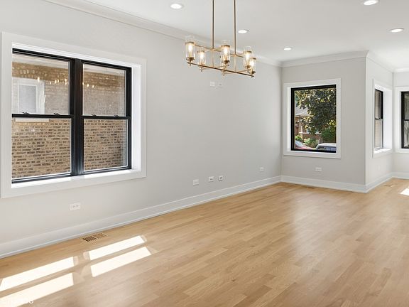 Welcome home to this like new, completely rebuilt, Portage Park single-family 5 bedroom + 3 1/2 bath dream home on a 30' lot. Step inside to discover superior craftsmanship in a transitional design. The sun-drenched living area boasts white oak hardwood flooring, creating a warm and inviting atmosphere. The gourmet kitchen is a chef's dream, equipped with LG black stainless steel appliances, an oversized 9-foot island and 36-inch cabinetry with 12-inch uppers. The built-in refrigerator, slow-close drawers, and cabinets all the way to the ceiling elevate the kitchen's functionality and style. This kitchen is perfect for entertaining or family gatherings. Upstairs, you'll find four bright and airy bedrooms, stylish bathrooms, and an impressive primary suite with cathedral ceilings. The lower level features a fifth bedroom, a spacious recreation room, and ample storage space. With a 2-car garage and fantastic mudroom with built-in storage, this home offers both convenience and style. Don't miss the opportunity to make this meticulously designed property your own. Your dream home awaits you!