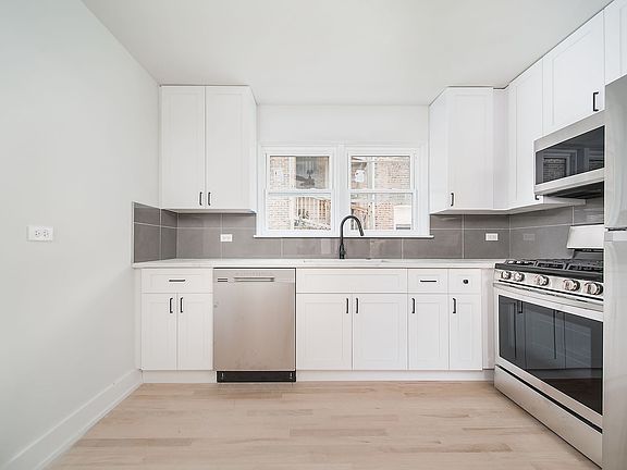 Renovated top floor 2 bedroom 1 bath unit in Belmont Cragin available for rent. Upgraded interior with hardwood floors, upgraded kitchen cabinets with granite countertops and stainless steel appliances. Two spacious bedrooms and an upgraded bathroom. Second floor unit. Laundry in the building and large laundromat right across the street. Owner looking for a stable tenant with a credit score above 650 points. Sorry no dogs at this time. Schedule a private showing today.