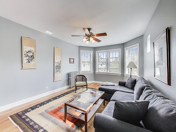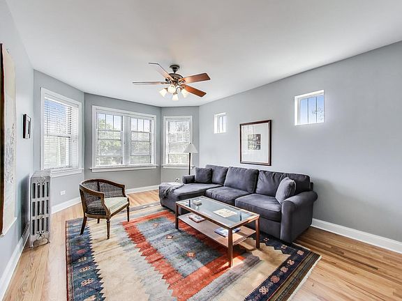Pristine two bedroom, one bath unit in a classic yellow brick building, situated in vibrant, Old Irving Park neighborhood. Refinished hardwood floors and fresh paint throughout. Plenty of sunlight floods this corner unit's many windows. Modern kitchen includes 42" cabinets, granite counters, stainless appliances, a dishwasher and space for small table. Low assessments include heating. 2025 updates include full repaint, new in unit washer/dryer, new microwave and a new window A/C unit. Large dedicated storage space. Ideal Old Irving Park location! Perfectly located close to public transport, 90/94 access, Kilbourn Park, and a huge number of restaurant, brewery, and shopping options in Old Irving, Six Corners and Avondale. Easy street parking.